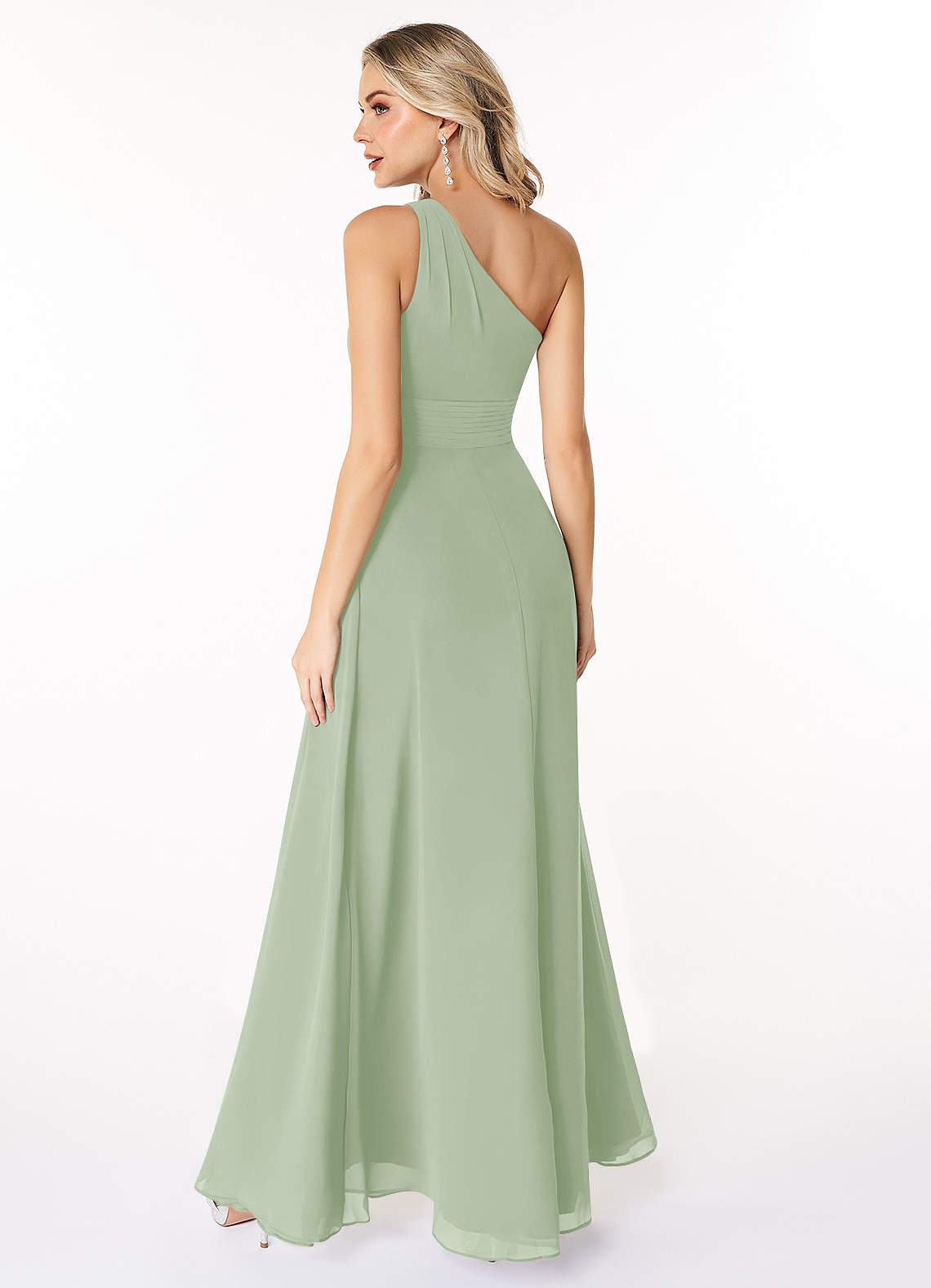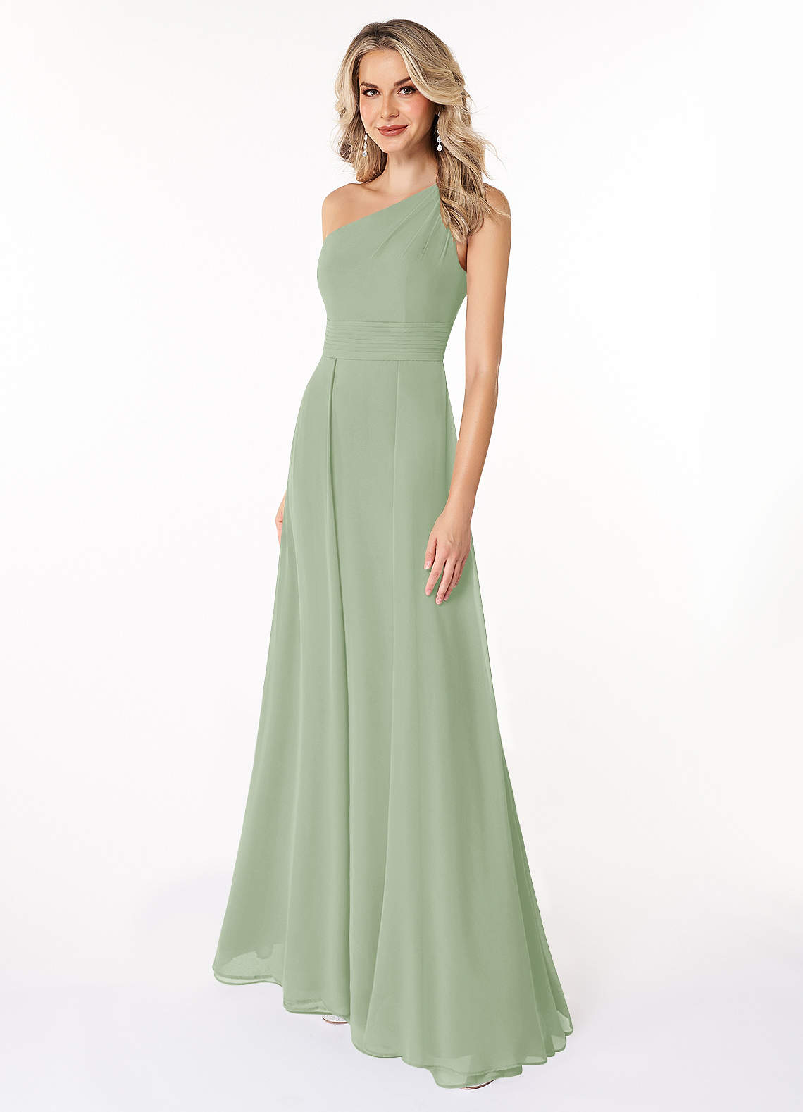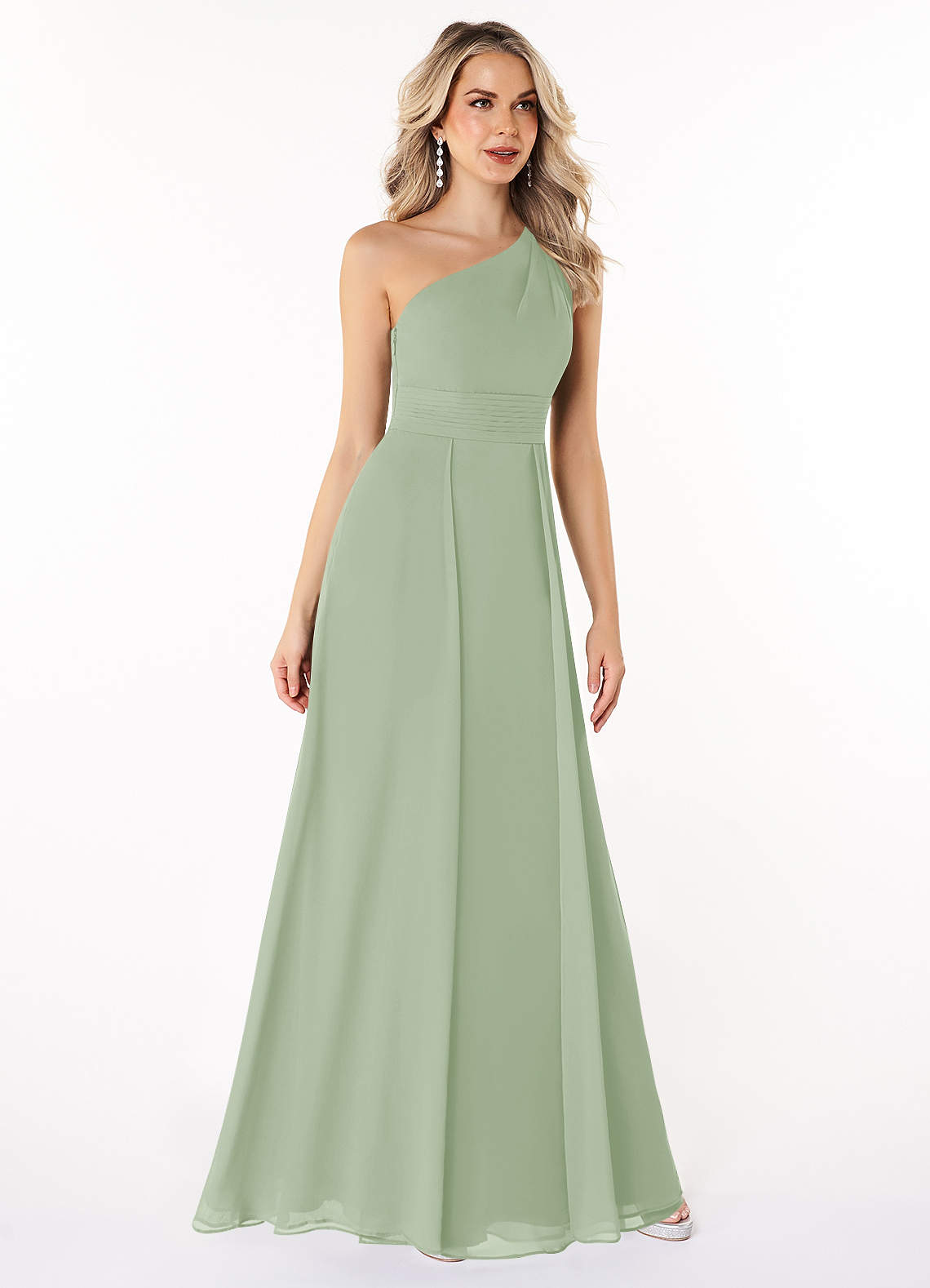 Have your leading ladies looking and feeling fabulous in the Dallas. This modern, one-shoulder beauty features pleating details through its waistband and shoulder strap. Let's not forget about the bridesmaid dress¡¯s unique details that will have your besties floating across the dance floor with their killer moves. This bridesmaid dress is available in full size range (A0-A30) and custom sizing.