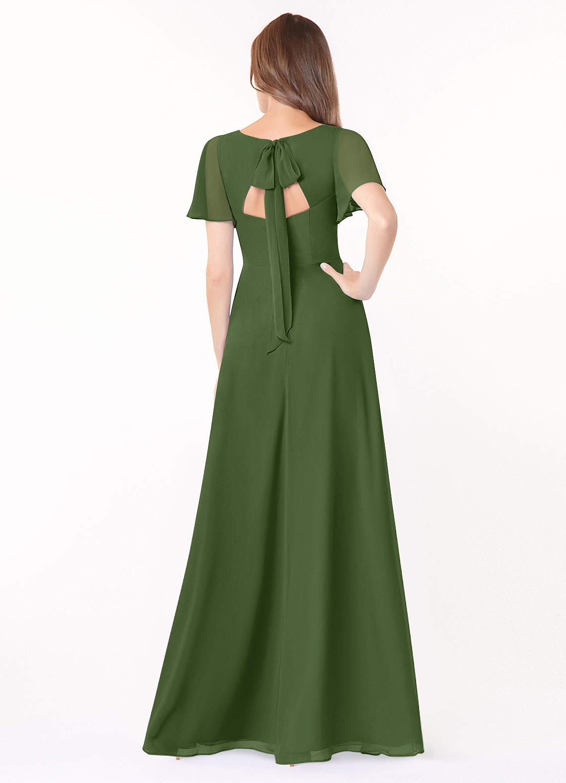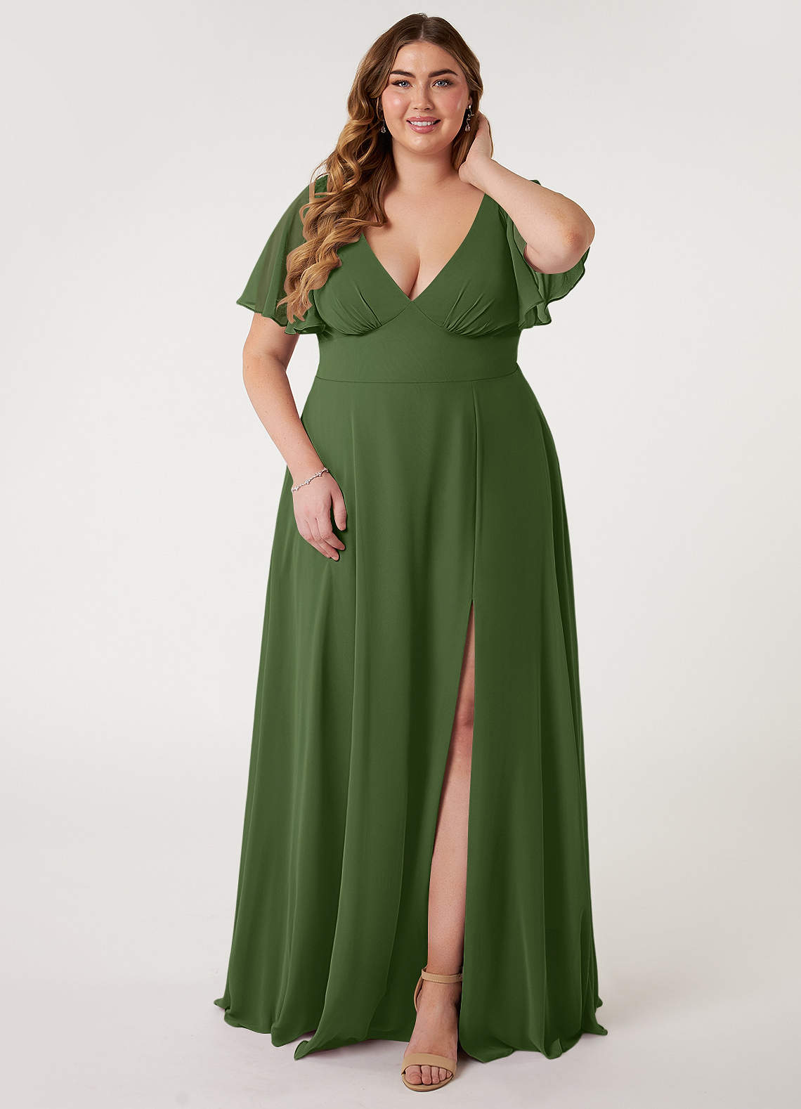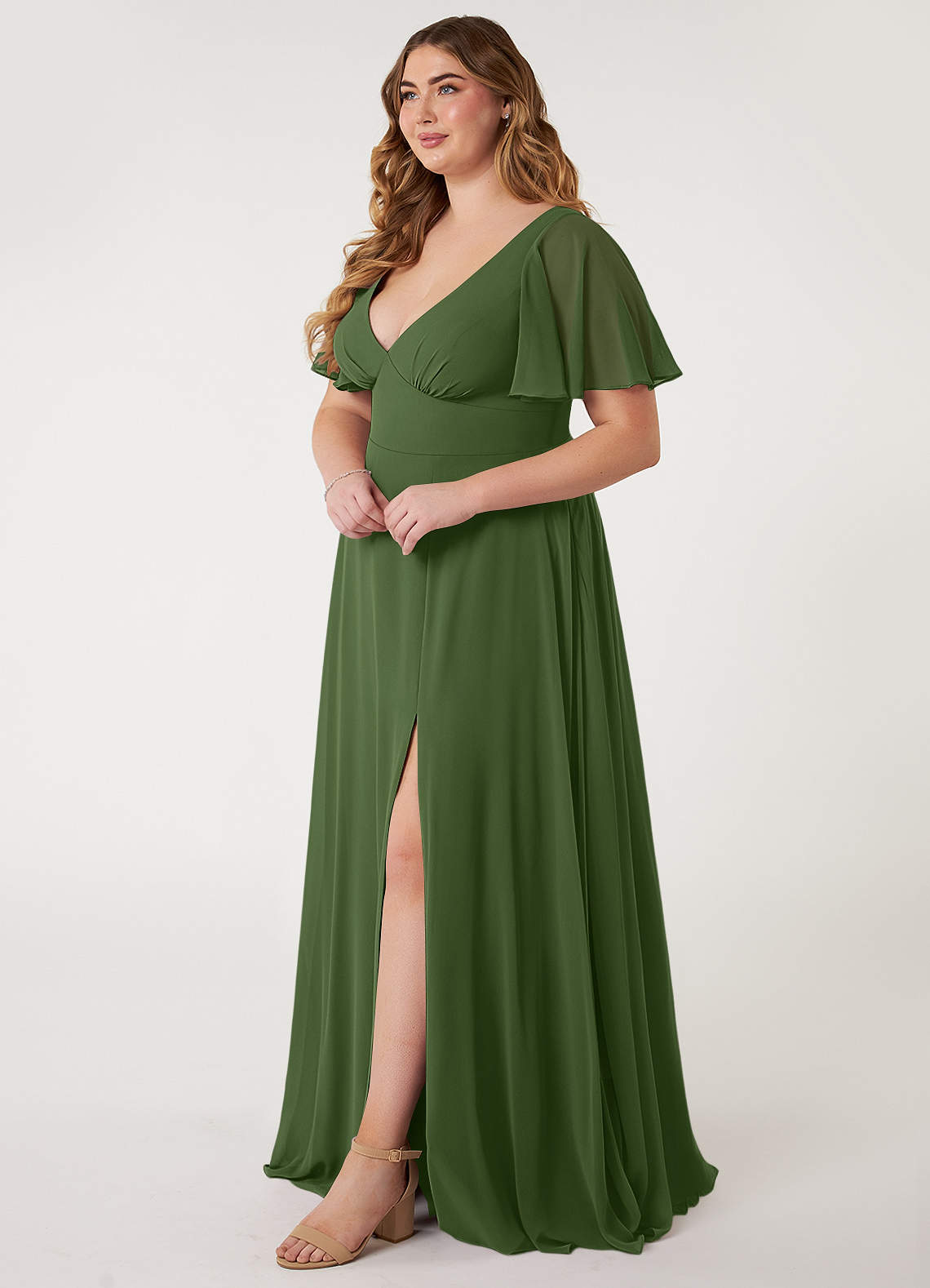 Kimber is a refreshing, modern choice for your bridal party. Featuring a V-neck bodice with an accentuating under-bust seam, the silhouette is highlighted by a stunning butterfly sleeve design. Her back bodice has a tieable bow detail with a keyhole opening. Her floor length A-line skirt has a leg slit that provides comfort for walking. We have also added pockets!