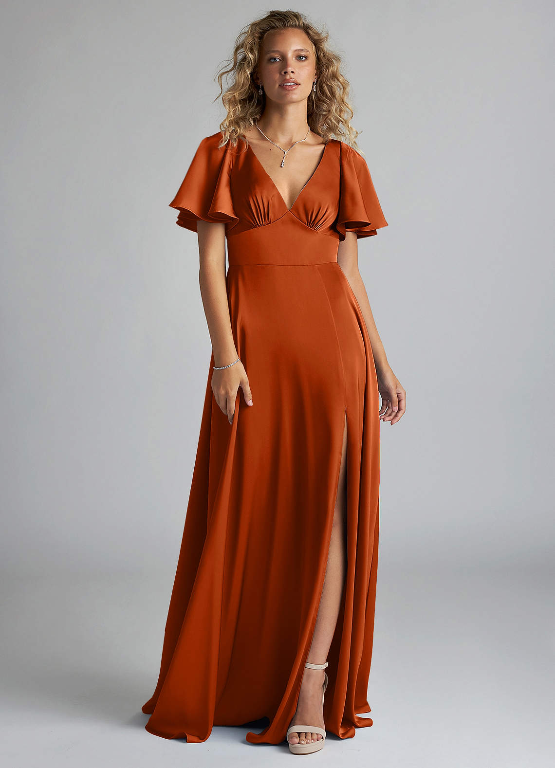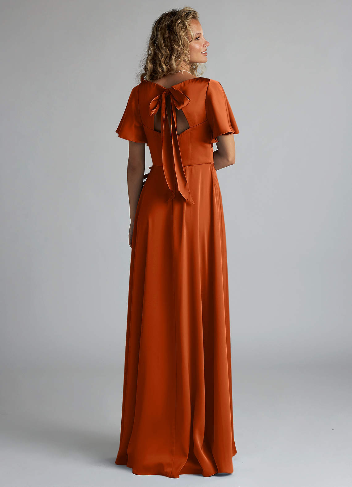 Kimber is a refreshing, modern choice for your bridal party. Featuring a V-neck bodice with an accentuating under-bust seam, the silhouette is highlighted by a stunning butterfly sleeve design. Her back bodice has a tieable bow detail with a keyhole opening. Her floor length A-line skirt has a leg slit that provides comfort for walking. We have also added pockets!