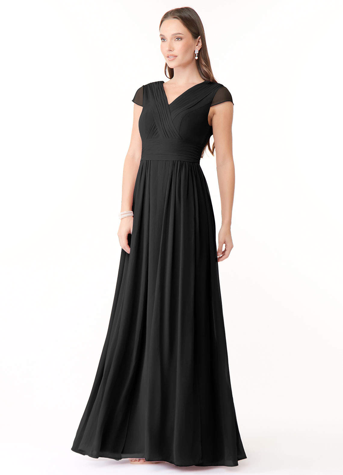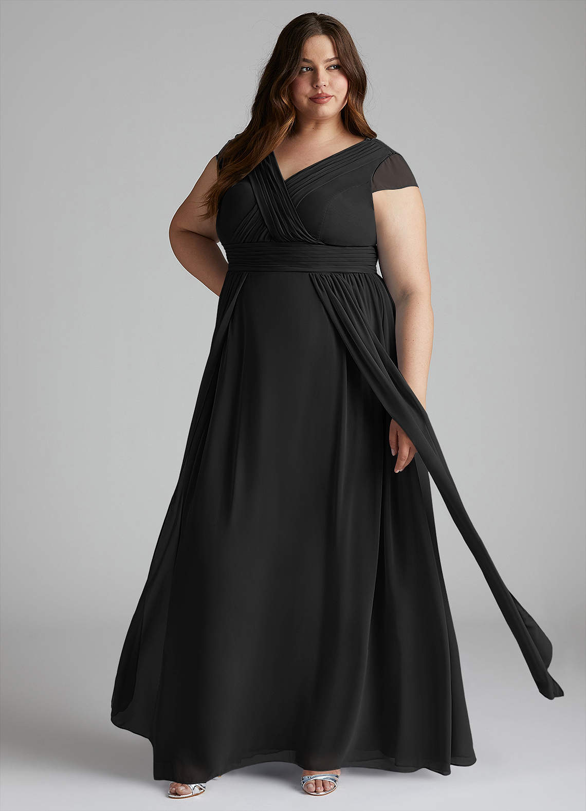 Feel fierce and fearless wearing Organa and be the rebellious princess you are! This floor-length, A-line bridesmaid dress made of chiffon features flattering criss-cross pleated panels across the bodice and the waistline for a daring, elegant look. She has a simple v-neckline, lightweight cap sleeves, and a back cowl.