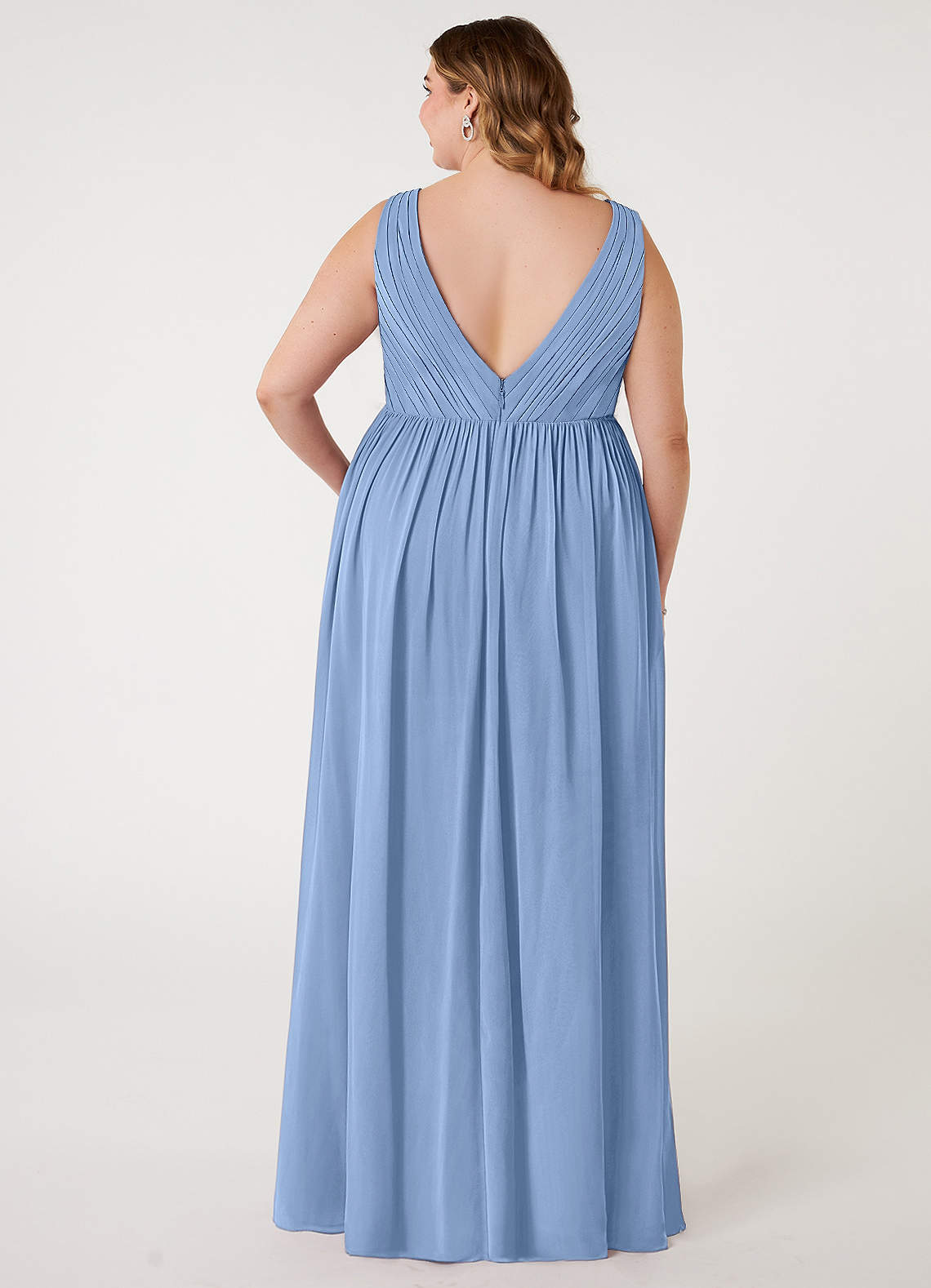 Ranvie is a chiffon A-line bridesmaid dress. This bridesmaid dress features a pleated V-neck bodice with tulle inset on the sides. We designed this gown with an empire waistline for a comfortable fit.